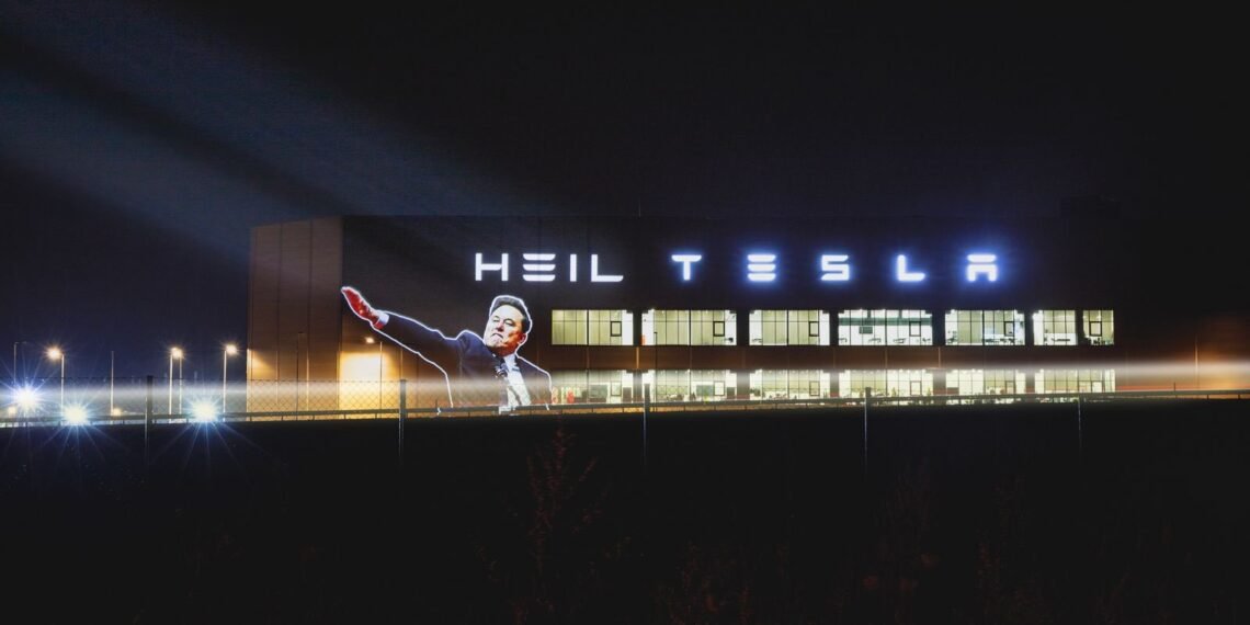 - Social media accounts from political action groups Center for Political Beauty and Led by Donkeys posted images showing a projected image of Elon Musk’s controversial salute on the facade of Giga Berlin.
