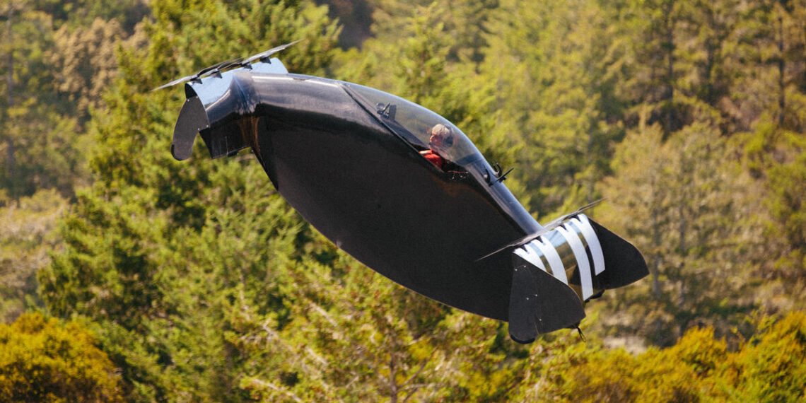With an empty weight of 348 pounds (158 kilograms), the BlackFly’s maximum payload is about 230 pounds (104 kilograms), and the occupant must be under 78 inches (198 centimeters) tall to fit inside under the bubble canopy. The aircraft features two 13.6-foot cantilevered tandem wings mounted on the front and rear of its small fuselage, and each wing has four propellers with electric motors.