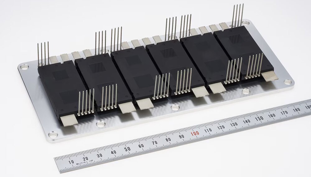 The J3-Series modules contain either a silicon carbide metal-oxide semiconductor field-effect transistor (SiC-MOSFET) or a silicon RC-IGBT. They feature compact designs and scalability for use in the inverters of EVs and PHEVs. All six J3-Series products will be available for sample shipments from March 25.