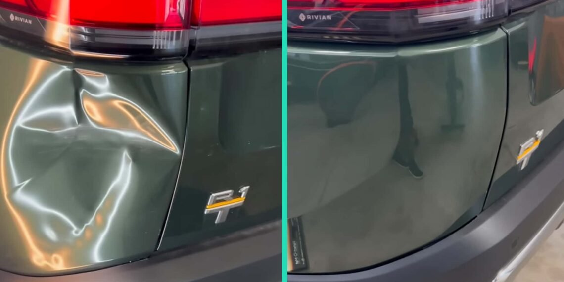 Rivian R1T repaired with paintless dent removal (Source: Matt Boyette / YouTube)