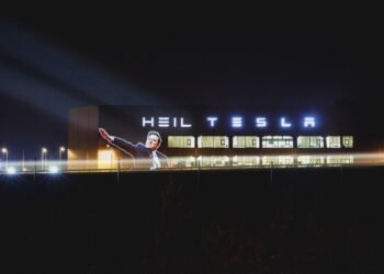 Two political activist groups in Germany are claiming that they have projected an image of Elon ...