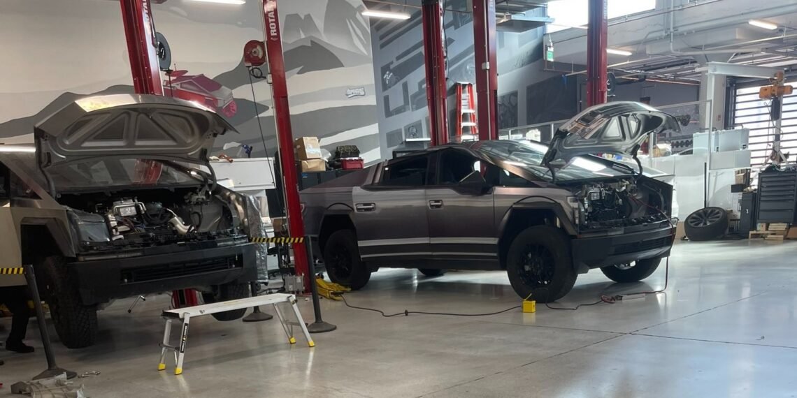 Tesla appears to have wrapped a Cybertruck to look like a Ford F-150 Lightning for some strange reason.