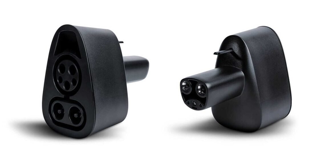 The adapter allows charging of Tesla cars (natively equipped with Tesla’s proprietary charging inlet, recently named NACS) at CCS1 chargers, operated by third-party charging networks.