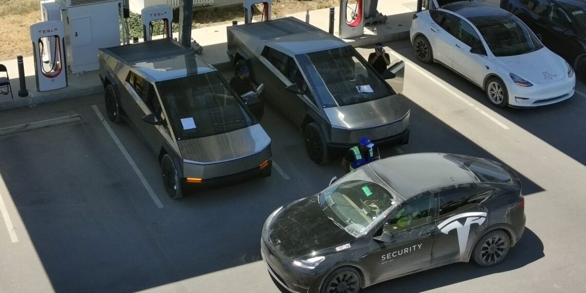 However, it could not keep Jeff Roberts, a local drone operator and observer of Tesla’s Austin-based Gigafactory, from snapping a few new pictures of two brand-new Cybertrucks that were spotted charging on factory property.