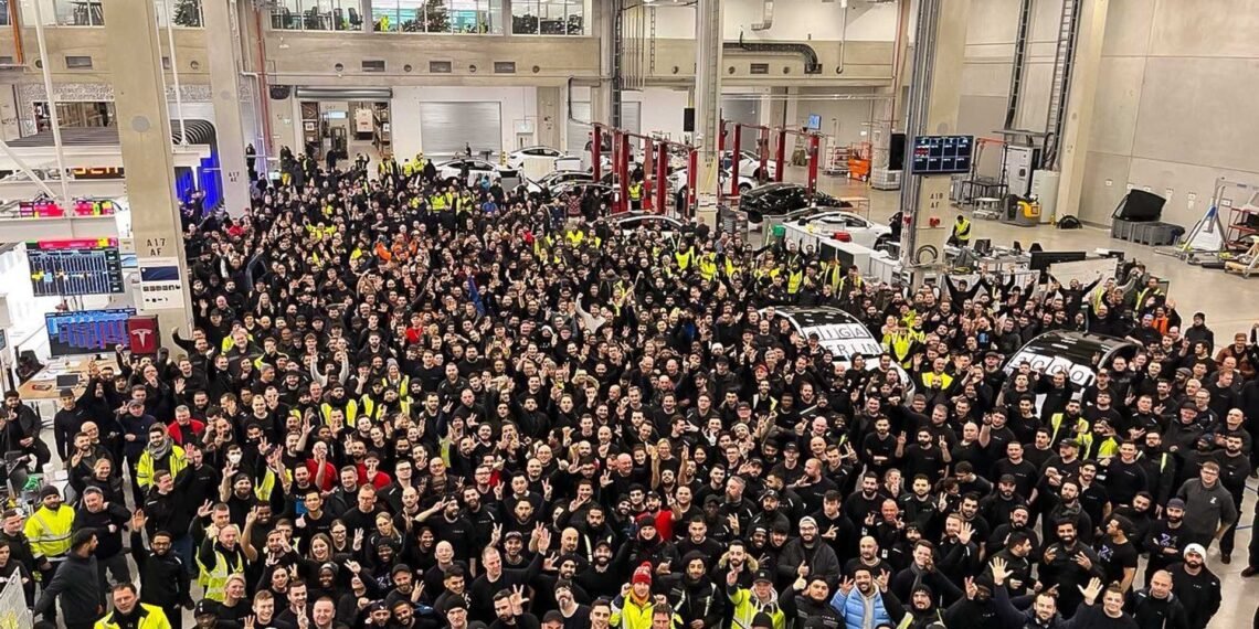 The company shared a photo with employees celebrating a production rate of 3,000 Tesla Model Y electric cars per week. That comes just a few days after the same rate of 3,000 units per week was achieved in Texas.