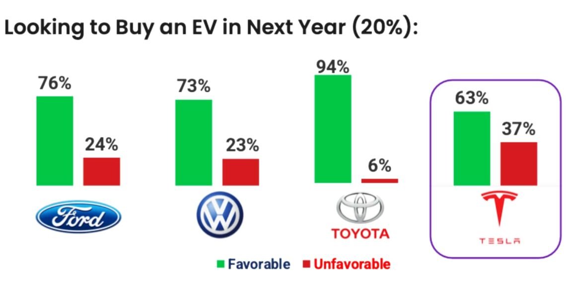 • As a result, Tesla has the worst favorability to unfavorability ratio of any brand among buyers looking for an EV, per a new study.