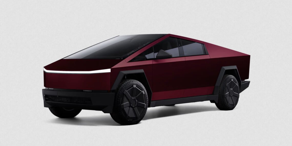 Satin Crimson Red Cybertruck wrap. Credit: Tesla