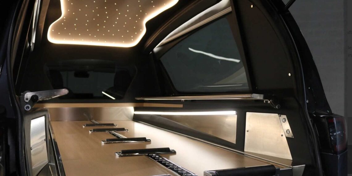 The Model 3 hearse features plenty of neat touches, including LED lighting in the rear compartment and an optional starry headliner ceiling. Funeral directors will be glad to hear the hearse has a powered tailgate as standard, meanwhile electric curtains are also a no-cost option.