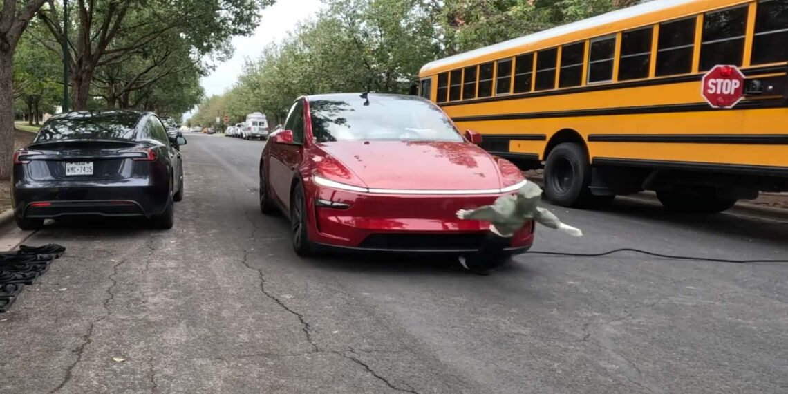 The videos embedded below shows a brand new Tesla Model Y driving with the automaker’s so-called Full Self-Driving (Supervised) advanced driver assistance system engaged. It passes by a stopped school bus with an active stop sign and strikes a child-sized dummy that was supposed to cross the street.