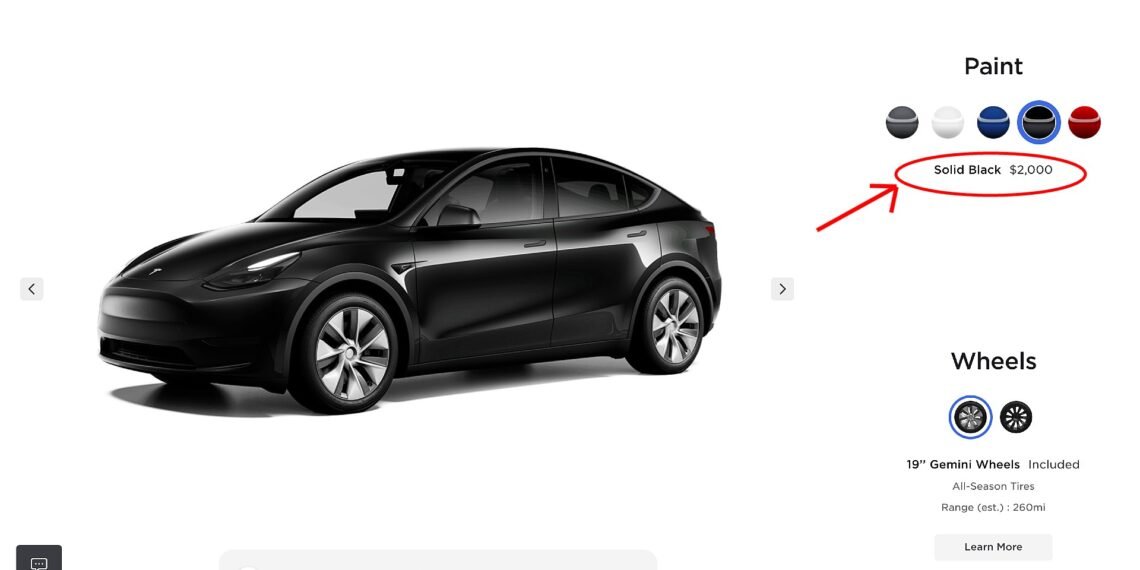 Tesla has pushed the price of the Model Y’s Solid Black colorway up by $500 to $2,000.