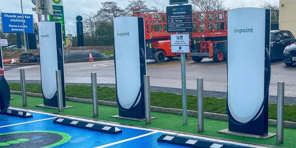 EV Point charging station with Tesla chargers (source: EV Point, @evpoint_uk / X)