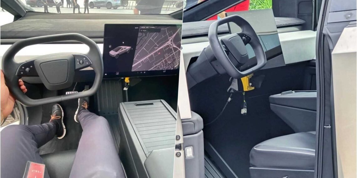 One of the images shows the point of view from the driver’s seat, providing the best look yet at the steering wheel, which looks like a combination of a yoke and the round steering wheels recently made available in the Model S and Model X.