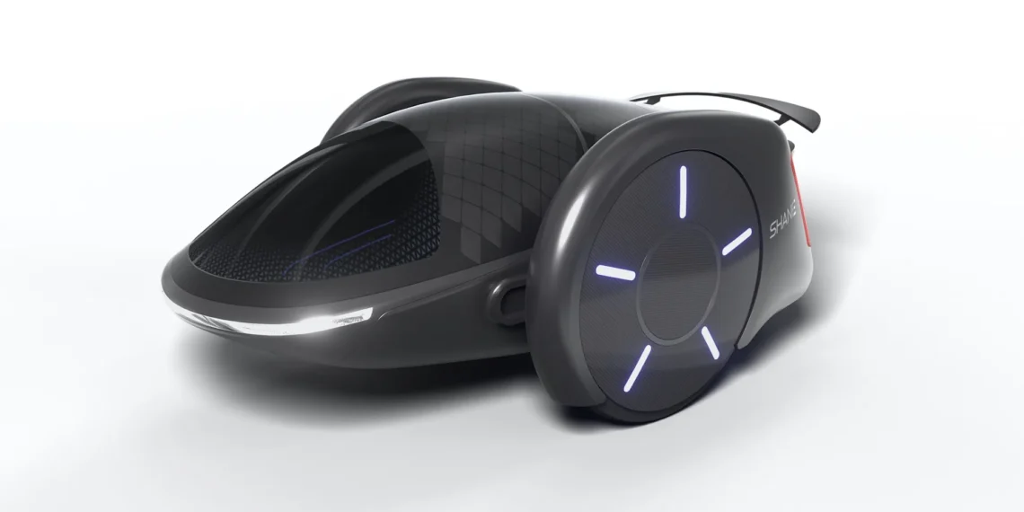 Created by Hoverboard inventor Shane Chen, the SHANE is a two-wheeled electric car with seating for five in a pod-like cabin sandwiched between giant wheels that “automatically react” to body motion to maintain stability, according to a press release describing the vehicle.