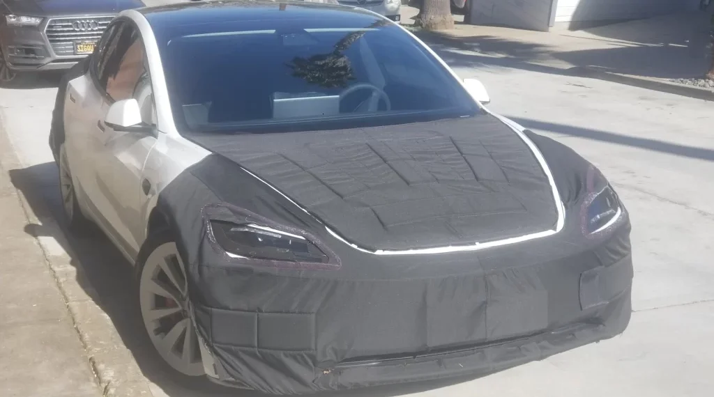 The new upgraded Tesla Model 3 Performance was sighted in San Francisco by Tesla Motors Club (TMC) member Watts_Up, who observed that the vehicle in question was fitted with 19″ tires. The TMC member was able to take several photos of the vehicle, which was a white prototype with camouflage covers in its front and rear.